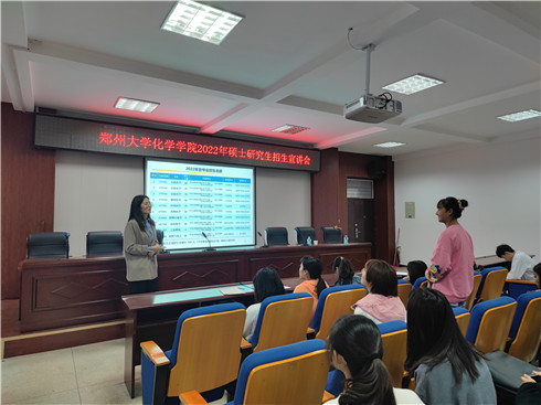 10月14日下午,周口师范学院2009级校友、郑州大学化学学院研究生办公室王秋灵老师来我院做2022年研究生招生宣传。2019级120名学生积极参与本次会议,会议由辅导员张婷婷主持。 会上,王秋灵向学生介绍了郑州大学化学学院的发展概况。就近年来化学相关专业的发展为切入点,重点讲解了学院的人才培养特色、科研实力、师资队伍、化学研究生直博生、硕博连读生管理办法,奖助贷学金等方面的政策等相关内容,并鼓励大家积极报考。针对同学们关注的招生情况、专业建设以及科研成果等方面的问题做出了更加详细的说明,为我院学生考研择校问题指明了方向。 通过本次宣讲会,不仅加强了学生们对郑州大学的深入了解,也通过走进考研目标大学的方式,细化了同学们的备考方向,为化学化工学院考研学风建设营造良好氛围。 (编审/郭丽娜 签审/李咏波 审核/张彩文)